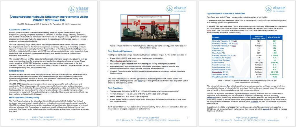 White Paper: Independent Hydraulic Efficiency Data Using VBASE® SPE® Base Oils